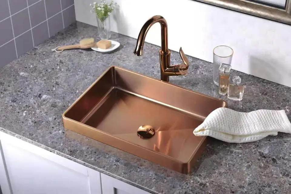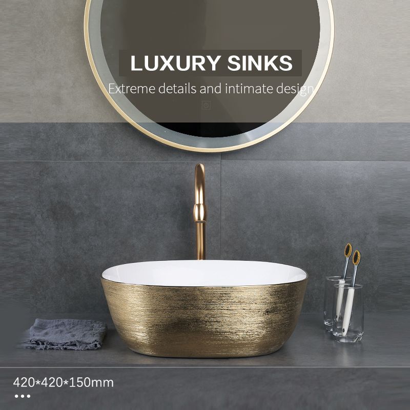 Luxury Bathroom Sink Pvd Coating Gold Sit On Mount Handmade Wash Basin 304 Stainless Steel Vessel Sink Leather Bag