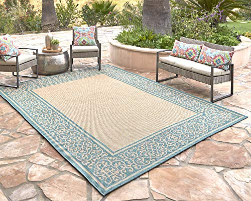 Savings On Gertmenian 21614 Indoor Outdoor Rugs Patio Area Carpet 5 25x7 Standard Blue Abstract Medallion